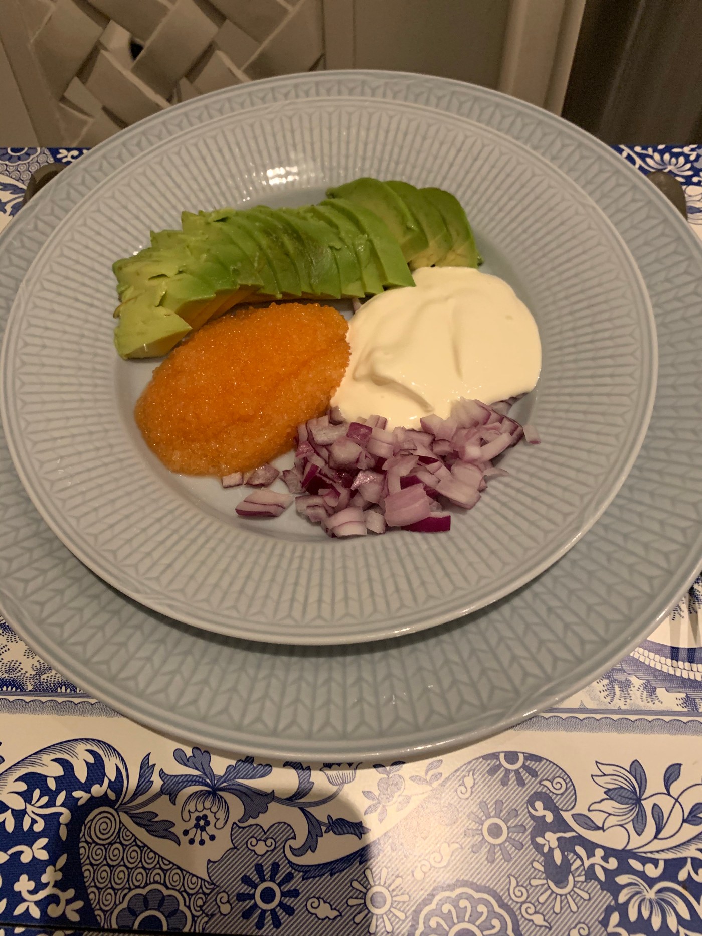 Lyxa till början av helgen lite med kalixlöjrom, creme fraiche, avocado och rödlök.