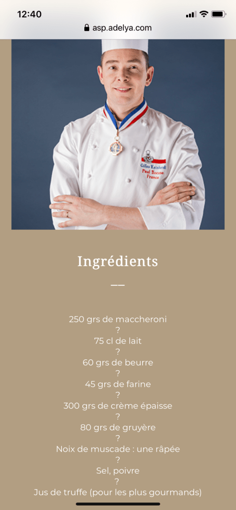 Le macaroni gratain par Gille Reinhardt, Paul Bocuse En översättning till svenska finns på matmamma.com Dela detta: Dela på WhatsApp (Öppnas i ett nytt fönster) WhatsApp Mer E-posta en länk till en vän (Öppnas i ett nytt fönster) E-post Skriv ut (Öppnas i ett nytt fönster) Skriv ut Gilla Laddar in … Relaterade Lämna en kommentar Avbryt svar Δ