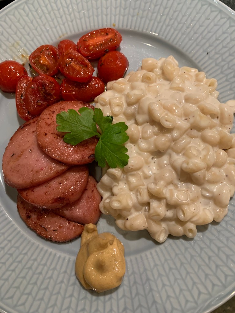 För stuvningen följ instruktionerna på Gammeldags macaron paketet. Krydda med lite muskot, vitpeppar och salt.