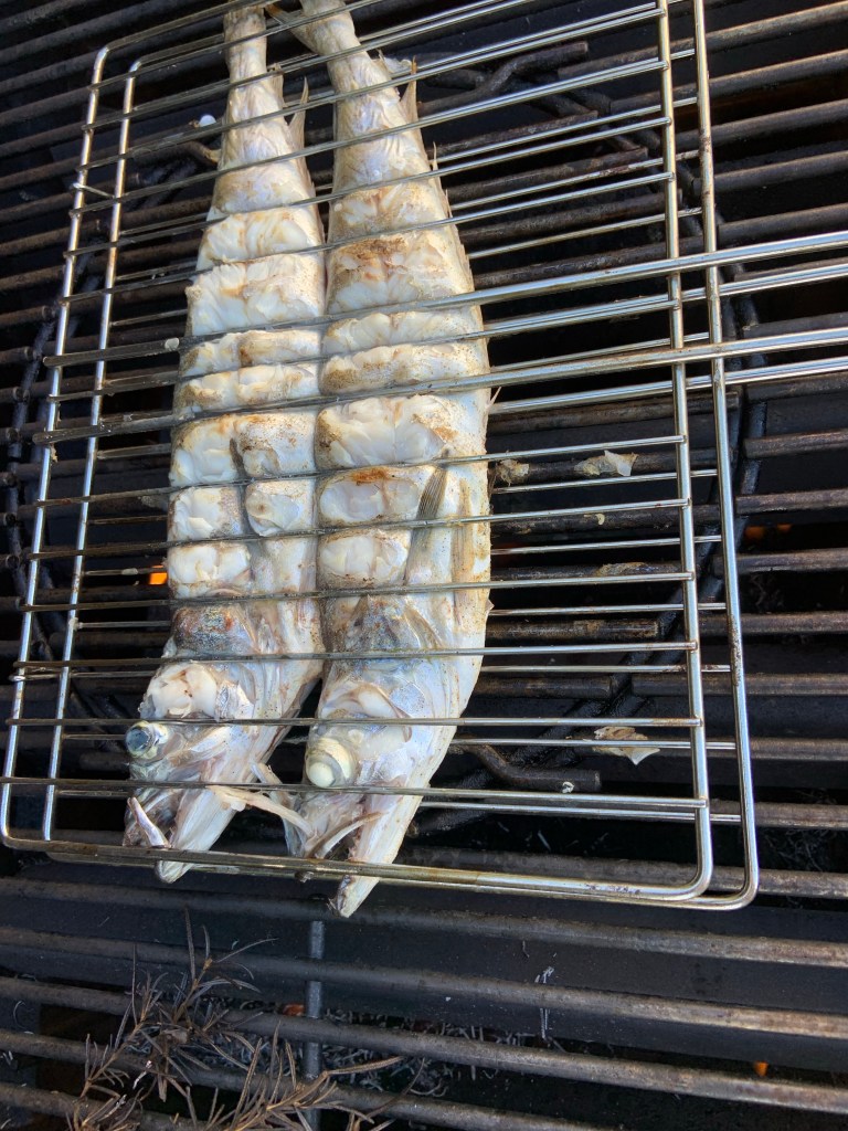 Vitling grillas på medelvärme med ca 10 min per sida när man grillar dem hela. Räkna en fisk per person. Salt, vitpeppar, olivolja och citron 🍋 invändogt innan grillning.