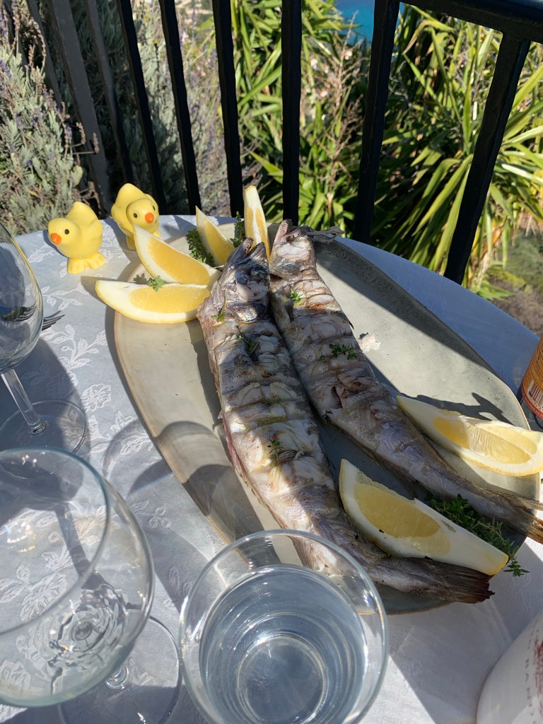 För de som inte äter vitlök efter grillning blanda fiskköttet med lite olivolja flingsalt och pressad färsk citron.