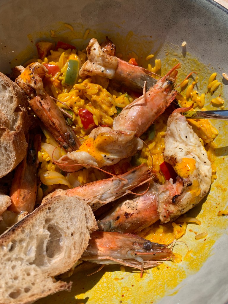 Häll såsen över risblandningen och rör om. Lägg upp på tallrikarna och fördela ut era Gambas som kronan på verket. Bon appetite à tous 😋