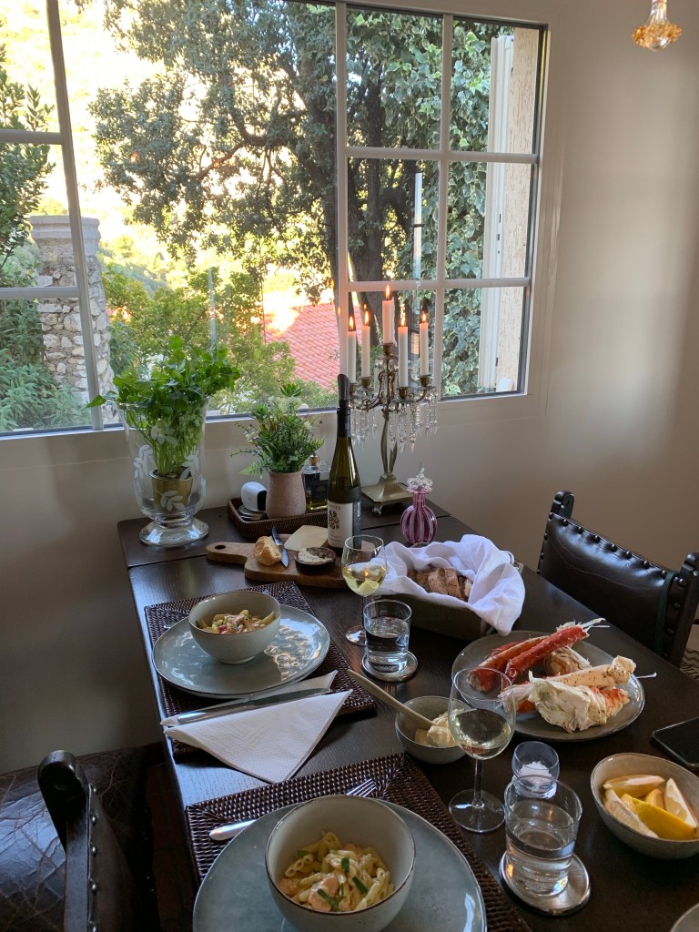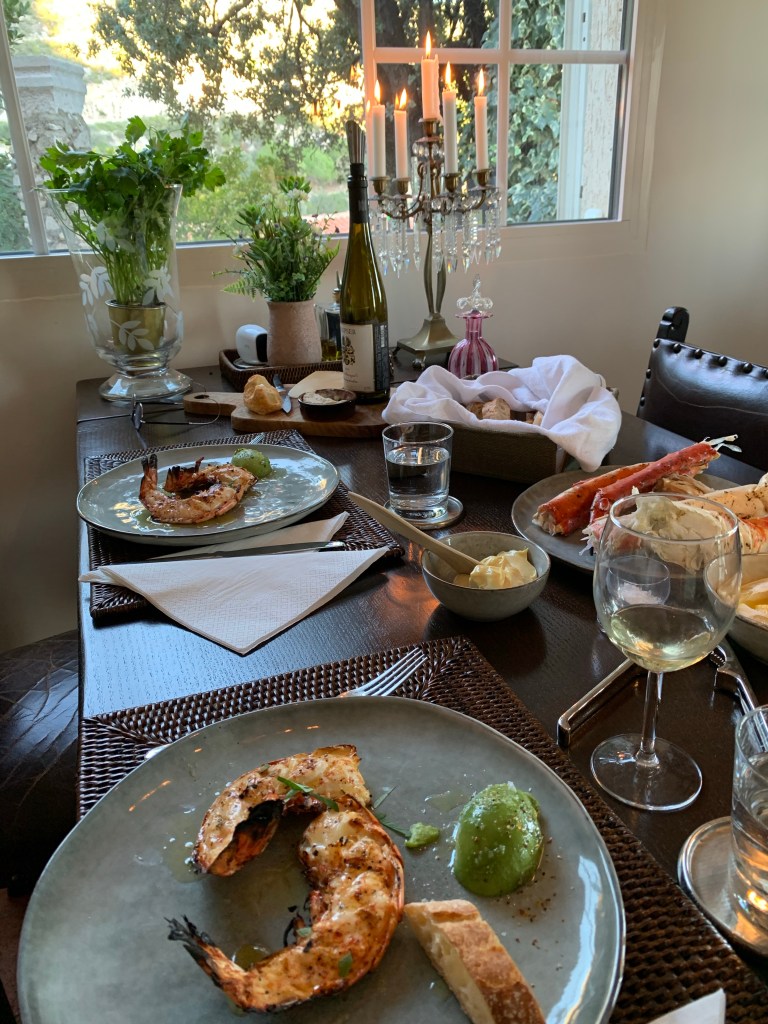 Varmrätt: grillade languster (kryddade med mild chili, svartpeppar) med skirat smör och flingsalt.