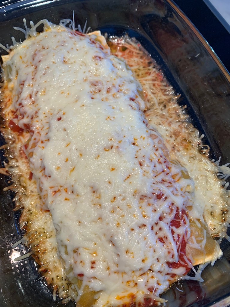 Häll över en god Italiensk tomatsås och strö ordentligt med riven ost över. Jag har använt riven Comté för att får ordentligt med smak. Går lika bra med Västerbottenost.